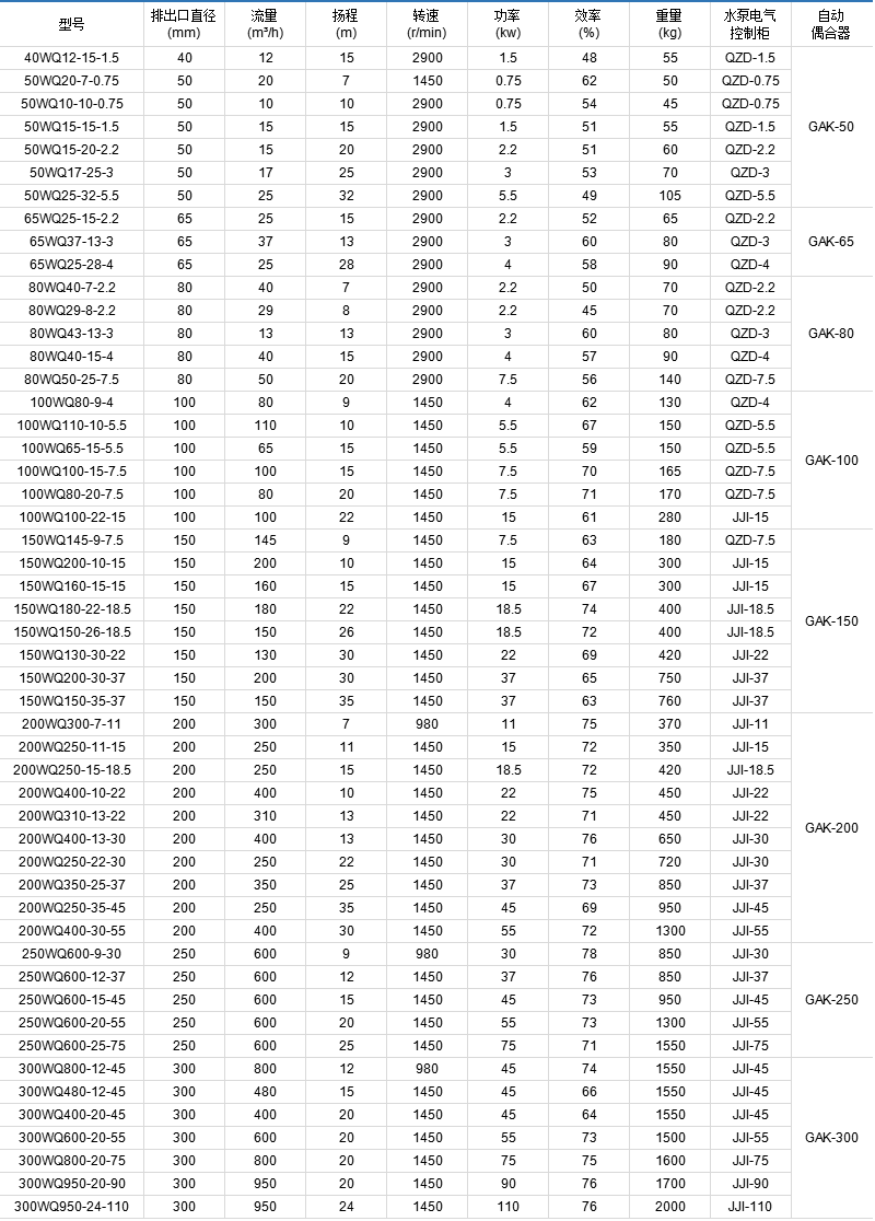 WQ型污水污物潛水泵,還采用不銹鋼葉輪及國(guó)內(nèi)先進(jìn)的機(jī)械密封裝置,使用壽命達(dá)3000小時(shí)以上。該泵廣泛適用于抽送排放工業(yè)與生活廢水、污水,包括含有紙漿、木榍、淀粉、泥砂、碎石、短纖維等渣漿,固體的也液體及尿糞等,是工業(yè)、農(nóng)業(yè)、城市、建筑行業(yè)理想的給排污水工具。