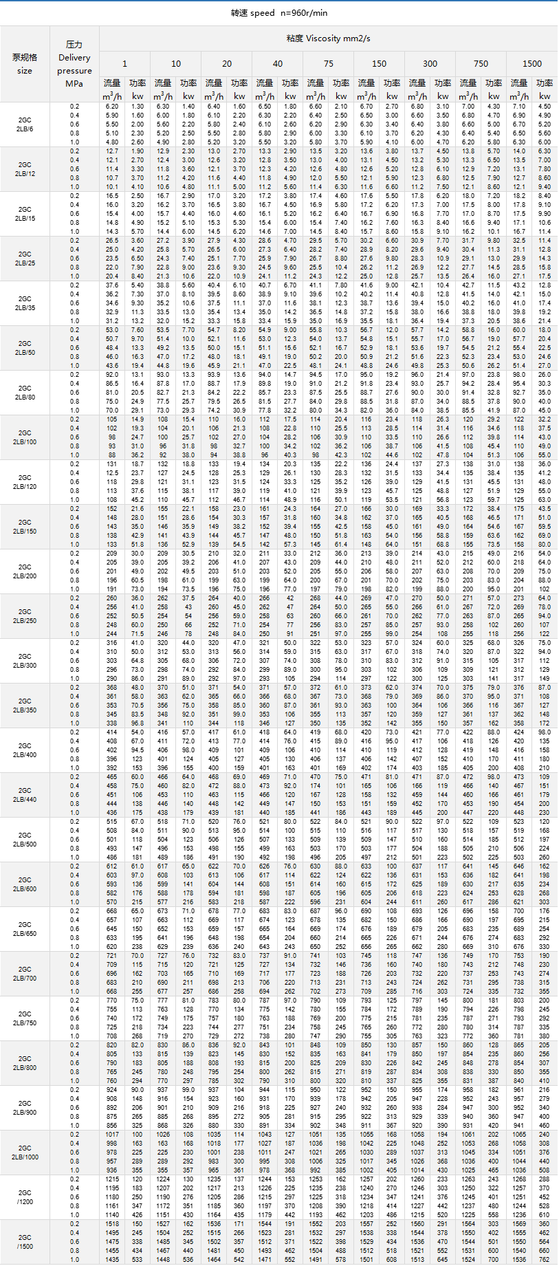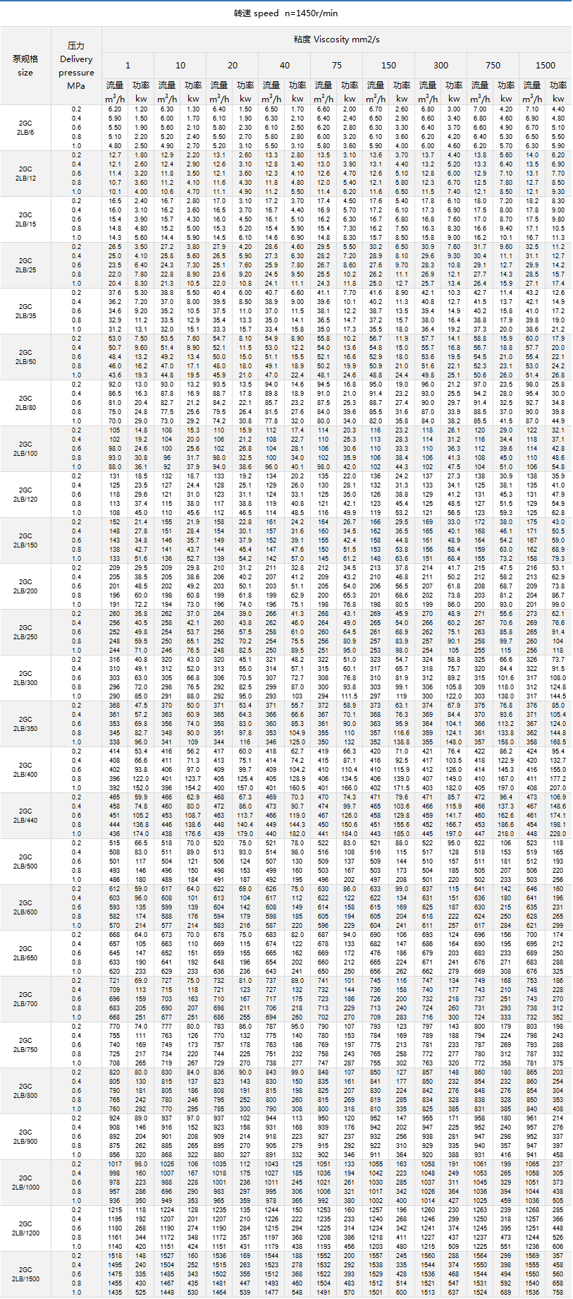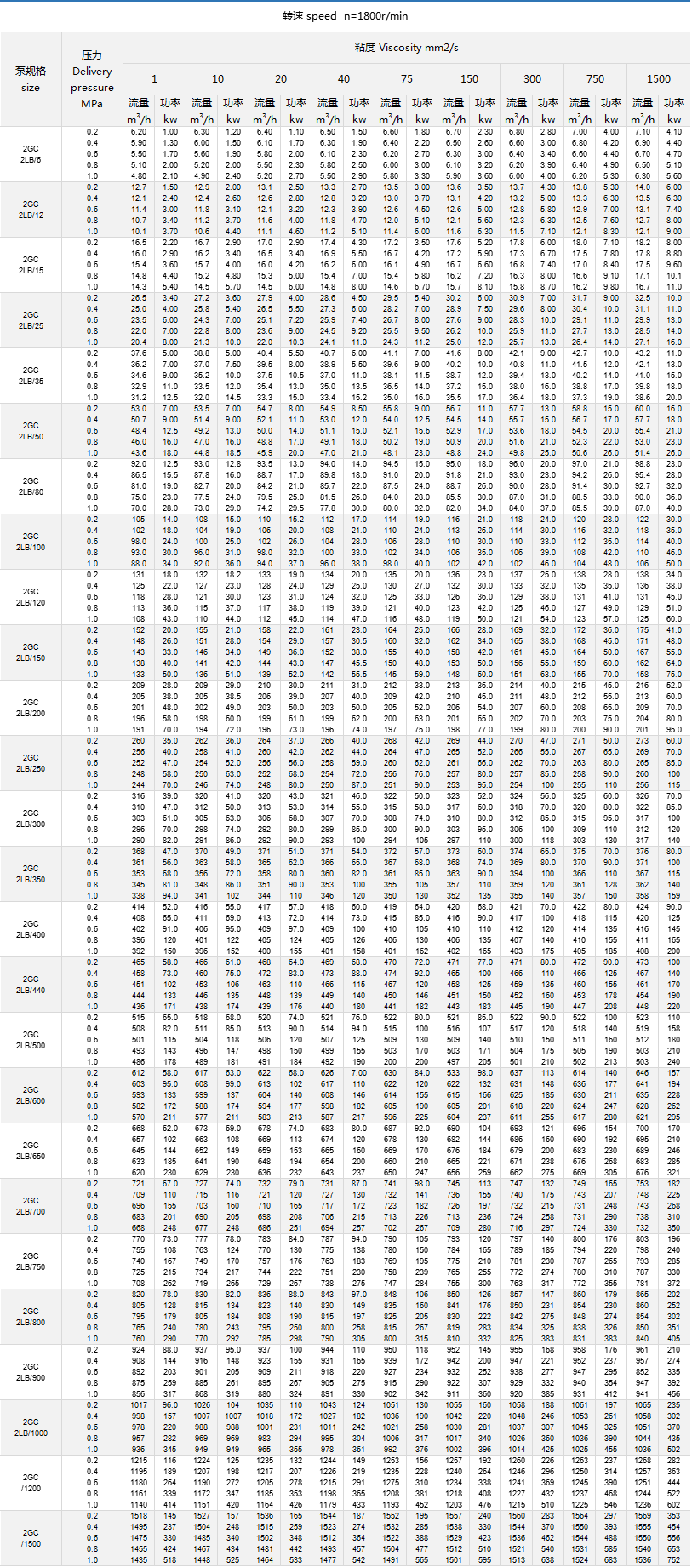 2LB、2GC系列臥式雙螺桿泵性能