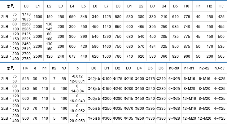 2LB泵及泵組外形和安裝尺寸(保留機(jī)型)