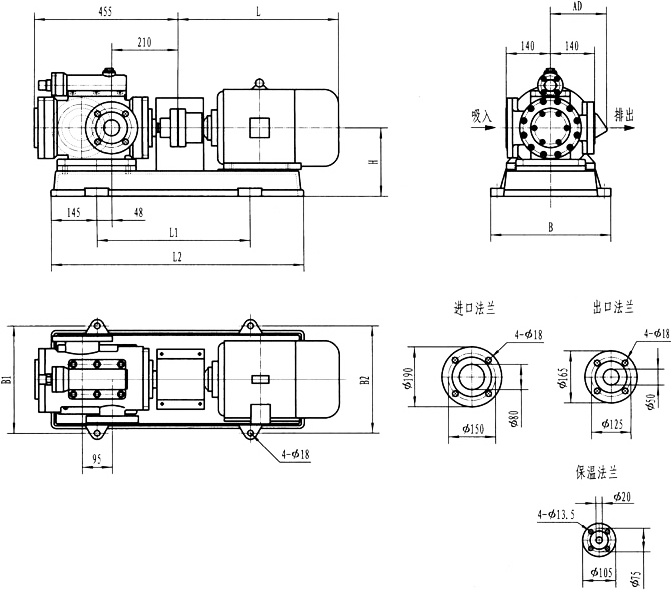 3GFBW45,3GF45型法蘭式泵外形及安裝尺寸