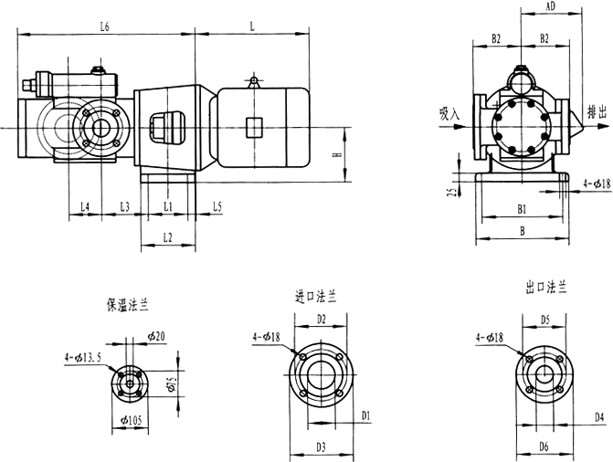 3GR36型法蘭式泵外形及安裝尺寸