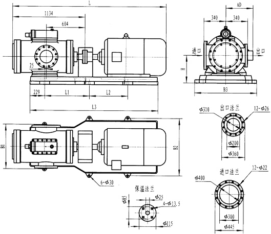 3GFBW60,3GF60型法蘭式泵外形及安裝尺寸